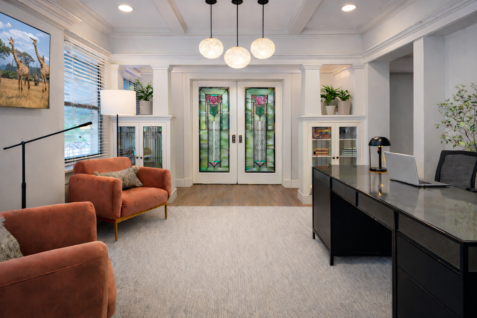 Park Center, Inc., a trailblazing nonprofit in mental health, substance abuse recovery, and housing-focused solutions, finds its home within these walls. The Arts and Crafts-inspired interior design breathe life into the space, echoing the organization's values of warmth and community.